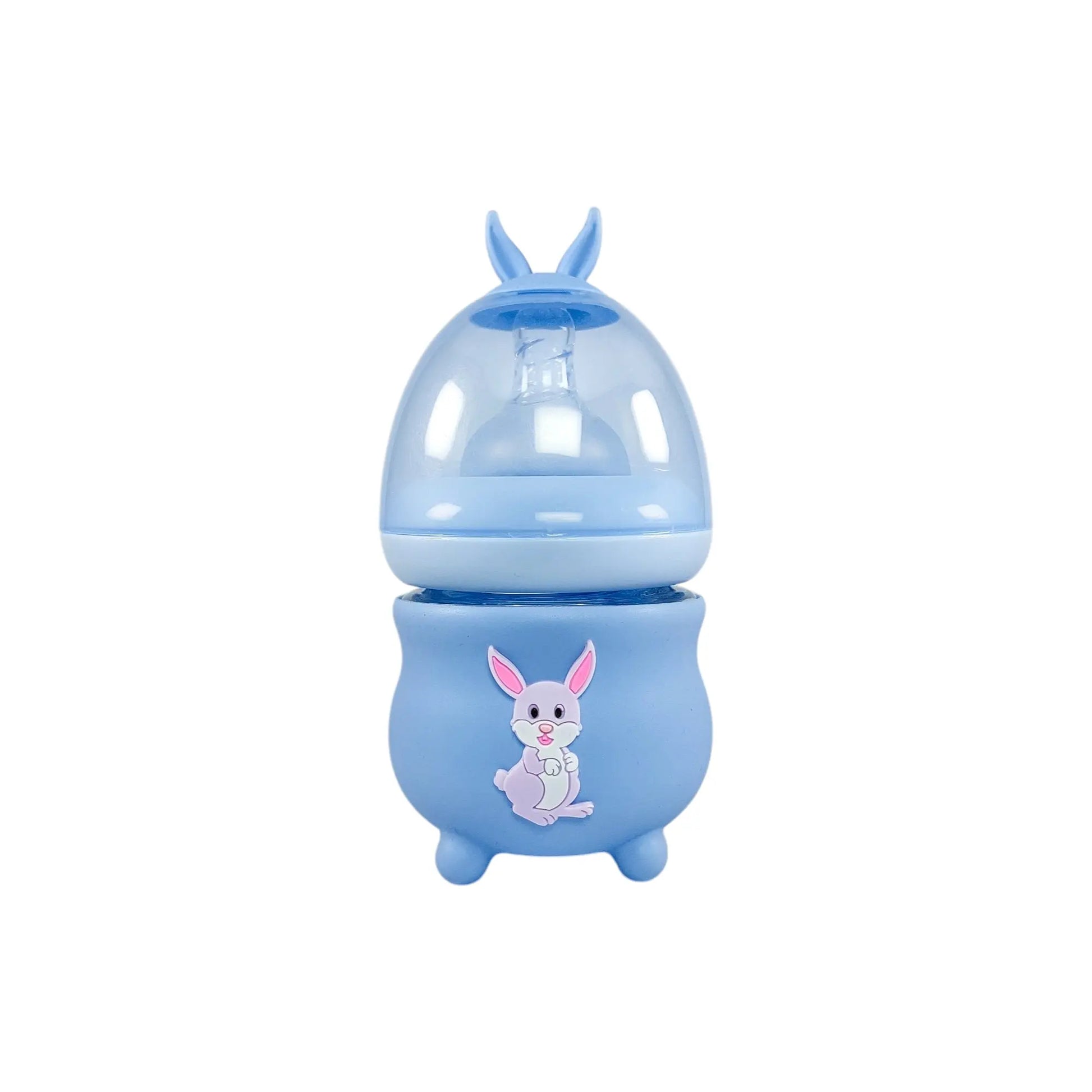 Rio's Wide Caliber Glass Feeding Bottle with Rabbit Sleeve and Fancy Cap (80 ml)